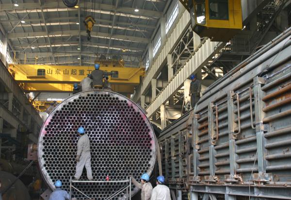 查看詳情 >2011年元月3日,機械制造公司員工們在寬敞明亮的廠房內(nèi)施工,制造加氫反應(yīng)器。2010年機械制造公司自行投資興建了制造面積達10000平方米的千噸級高壓重型容器車間。...