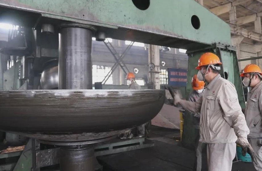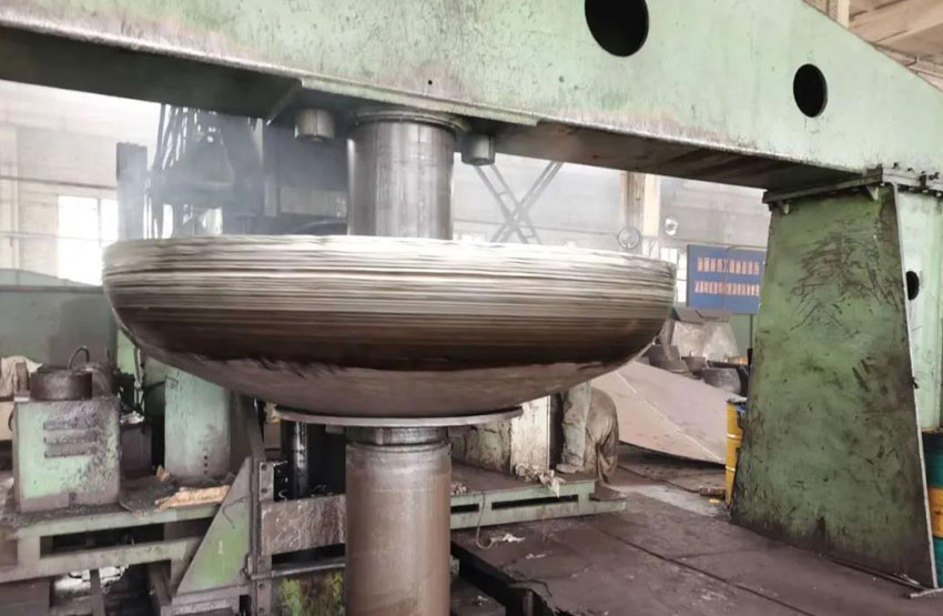 國內(nèi)企業(yè)在加工大尺寸、厚板材封頭時,通常采用熱壓成型,因受熱不均勻、鋼材組織結(jié)構(gòu)易發(fā)生變化、成品尺寸公差大等因素制約著產(chǎn)品可靠度和生產(chǎn)效率。本次技術(shù)突破,使公司在今后生產(chǎn)中,在保證較高加工精度的前提下大大提高了生產(chǎn)效率。同時,冷旋對鋼材組織結(jié)構(gòu)影響較小,產(chǎn)品在使用中的耐壓程度及抗破壞性也優(yōu)于傳統(tǒng)加工方法。